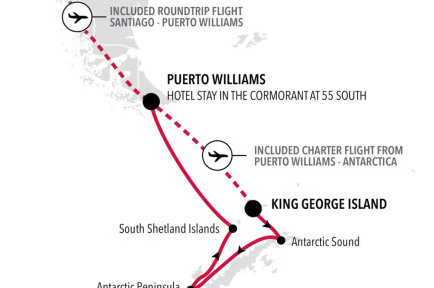 为了保证极致的舒适和安心,我们在威廉姆斯港登船/下船的所有南极洲航程都包括圣地亚哥和威廉姆斯港之间的往返包机航班,无论选择何种票价。
